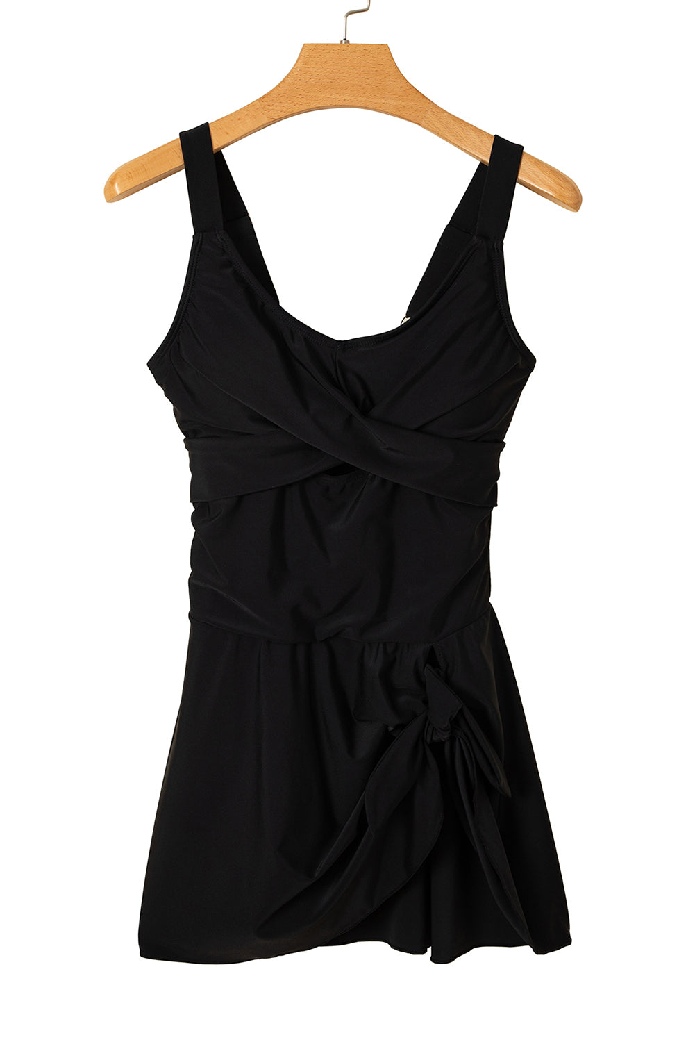 Black Adjustable Straps Cutout Ruched Knot Slit One Piece Swim Dress