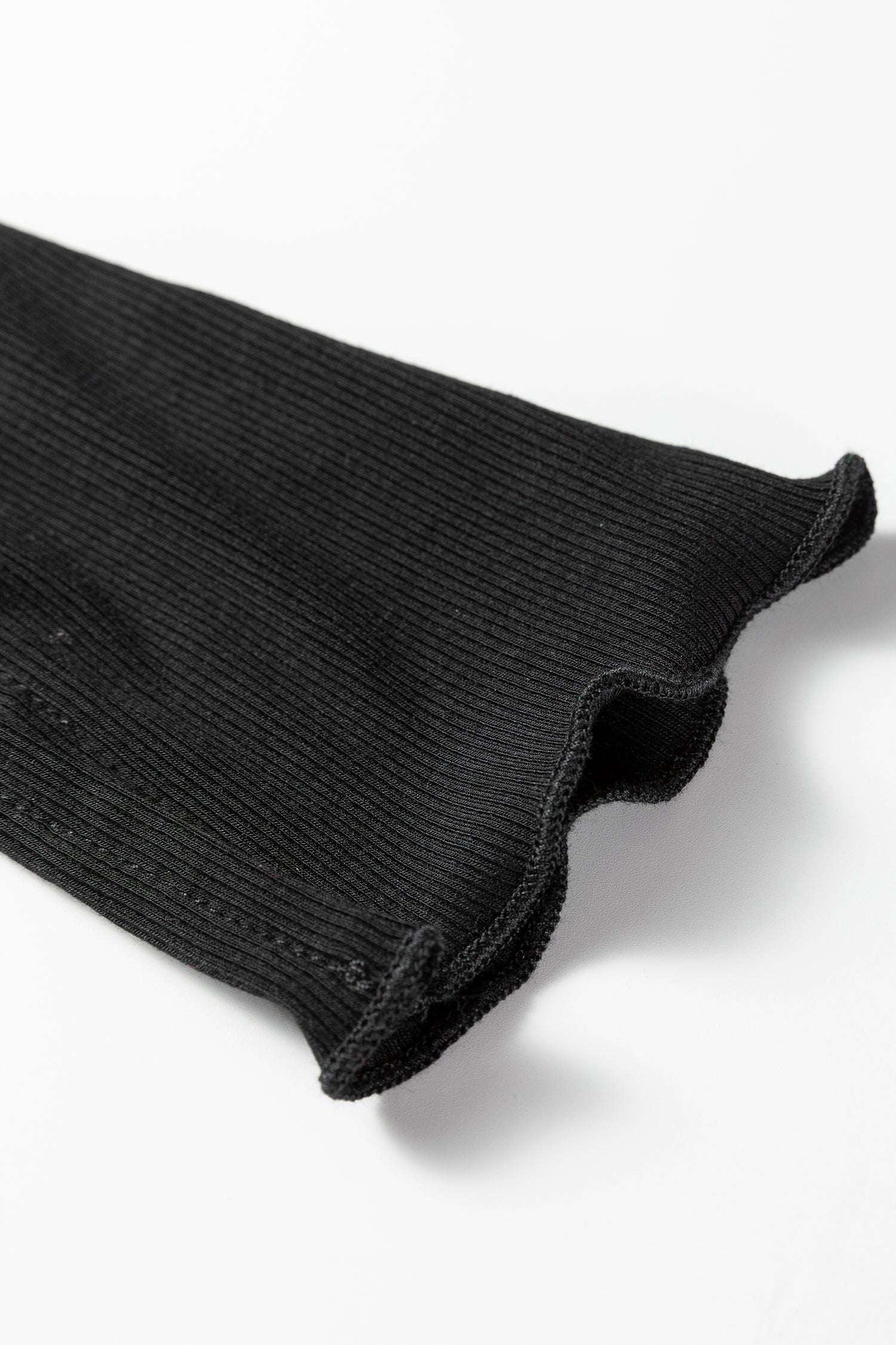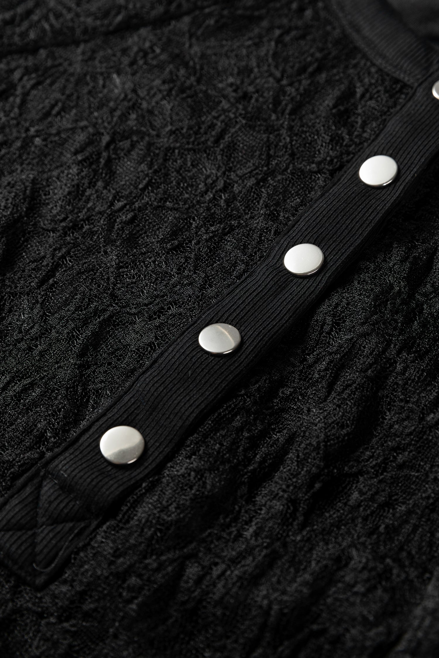 Black Sheer Lace Long Sleeve Slim Henley Top