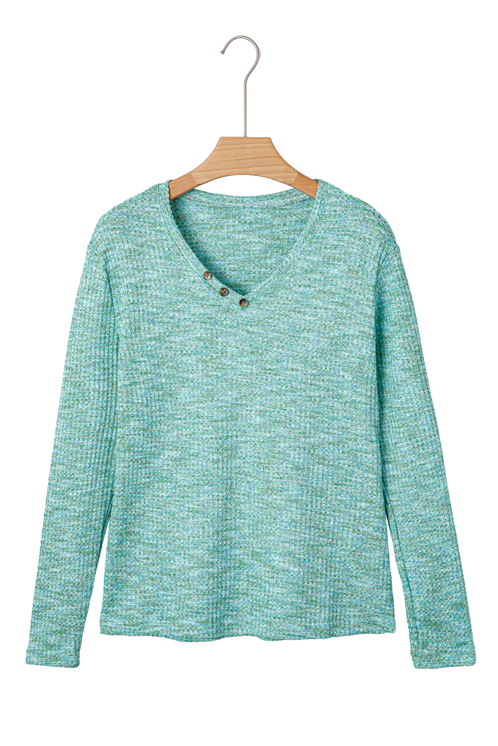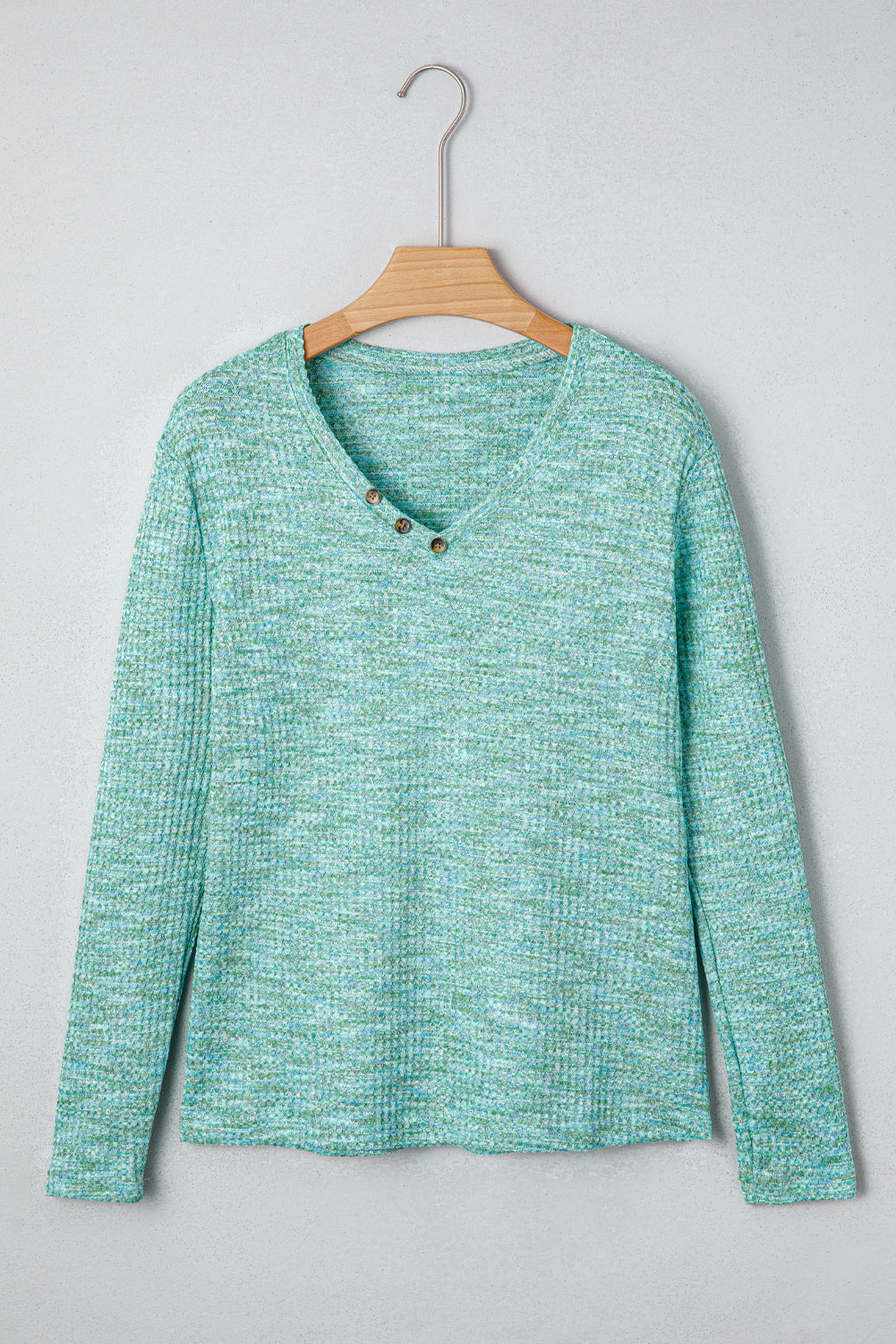 Moonlight Jade Button Long Sleeve V Neck Waffle Shirt