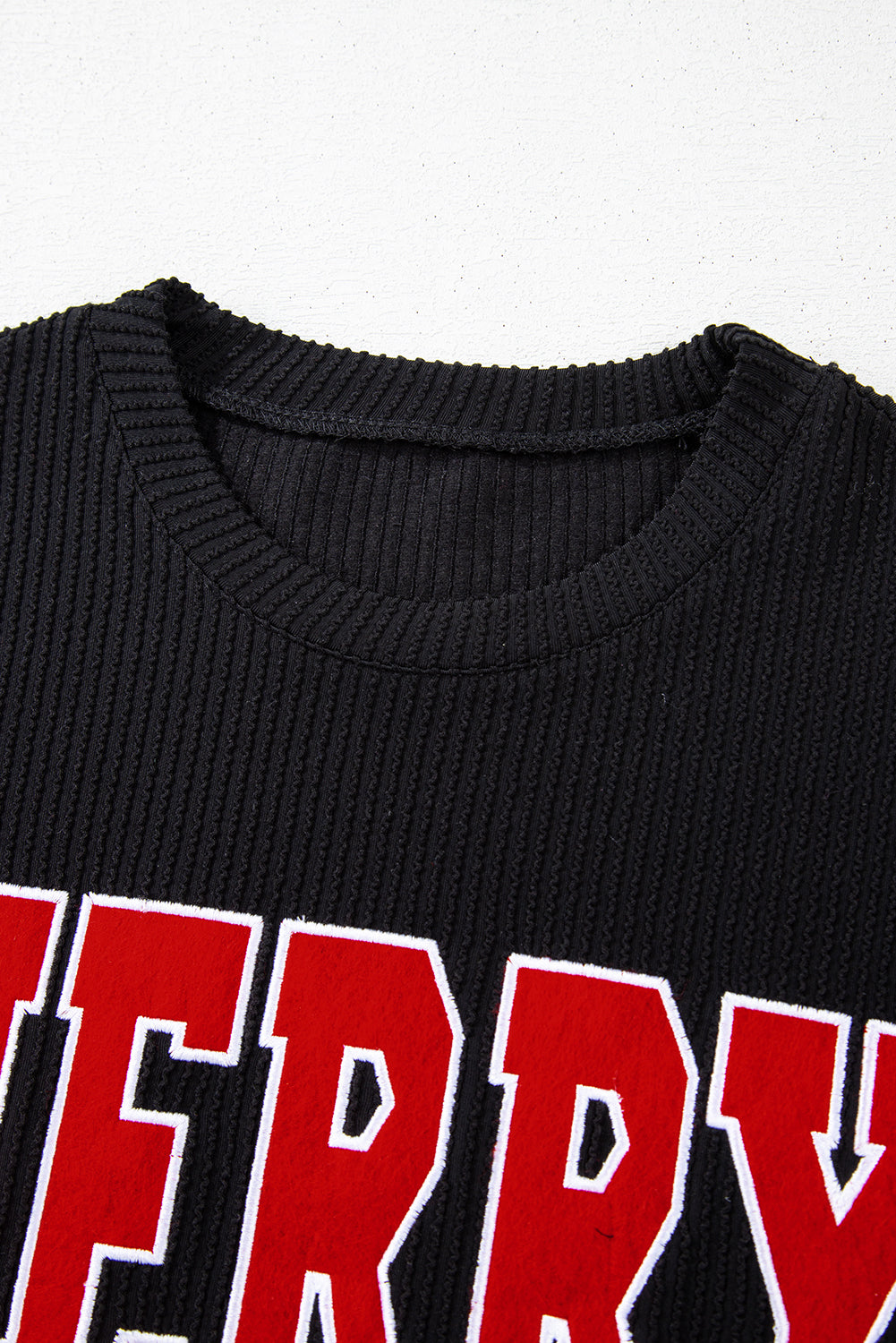 Racing Red Corded MERRY Long Sleeve Top and Shorts Pajama Set