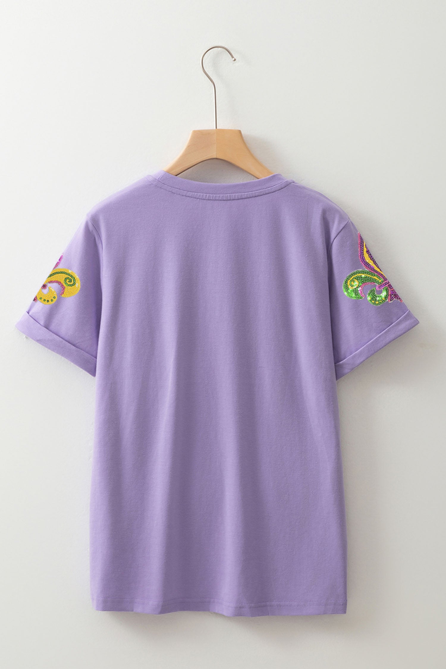 Wisteria Mardi Gras Sequined Pattern Holiday T Shirt